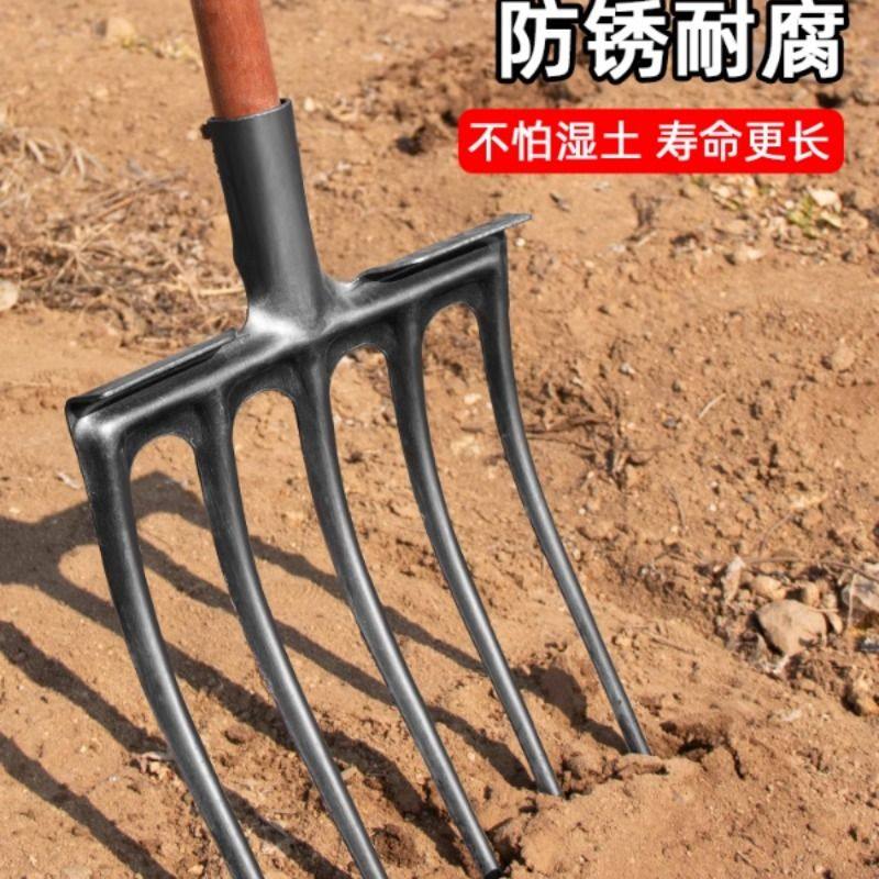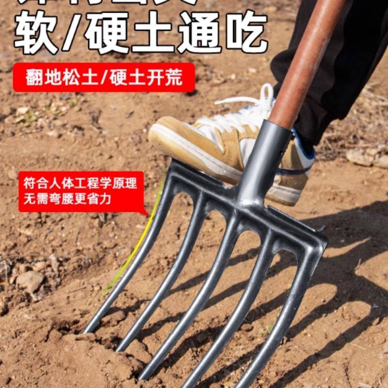 翻地松土神器四齿钢叉子农用翻土挖地农用工具大全五齿铁叉子省力