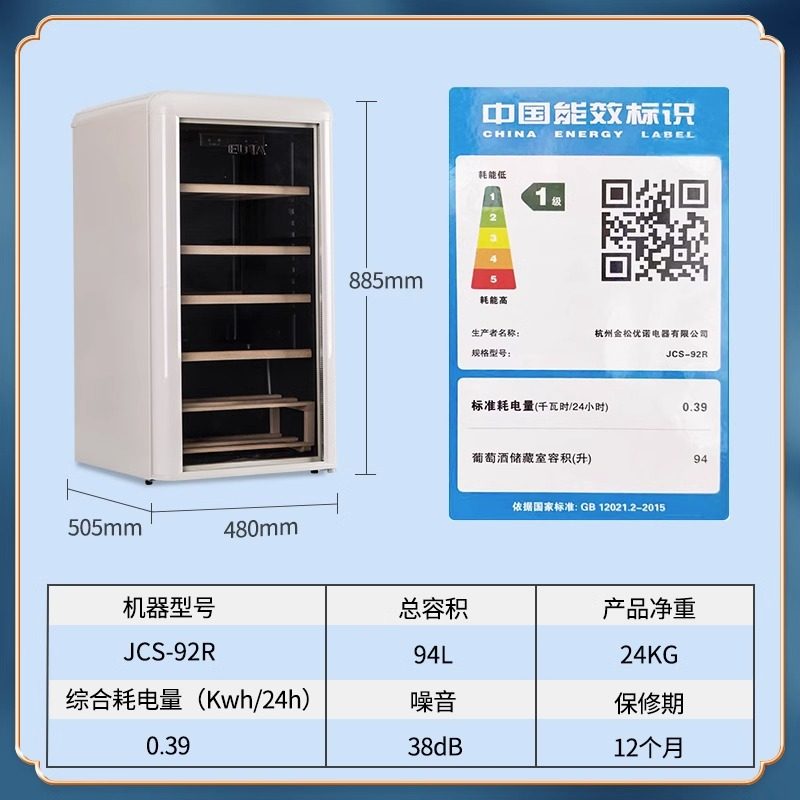 EUNA/优诺 JCS-92R复古红酒柜冰吧恒温家用存酒柜客厅小型透冰箱