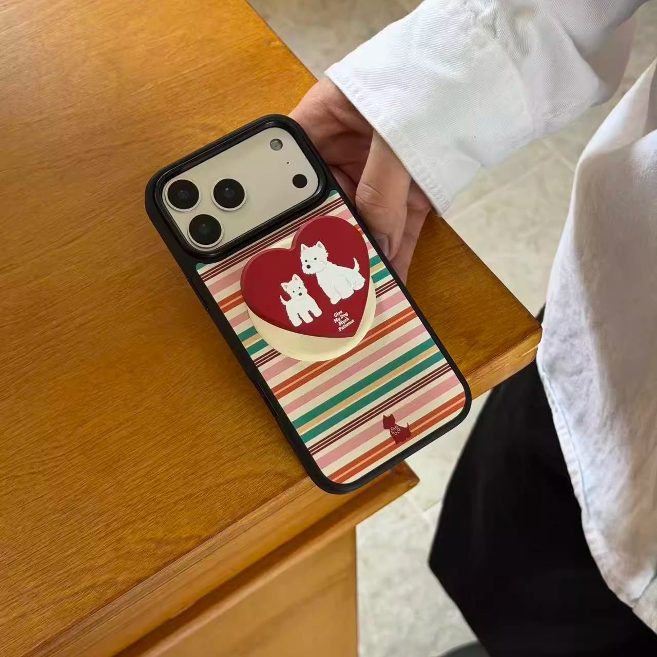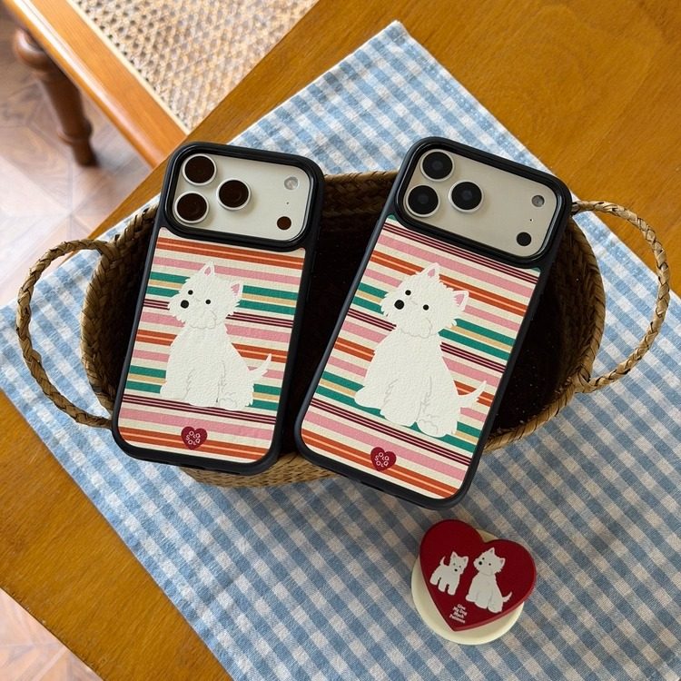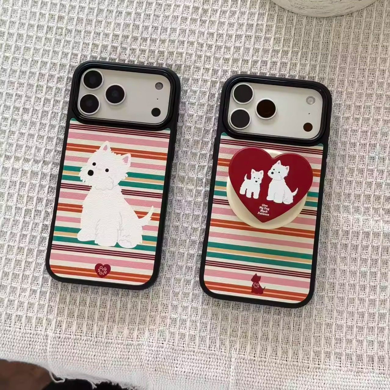 OLASOLA原创卡通西高地皮质磁吸手机壳适用苹果iPhone17promax复古彩色条纹16pro小众设计全包可爱手机保护套