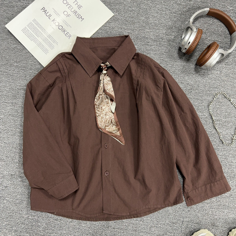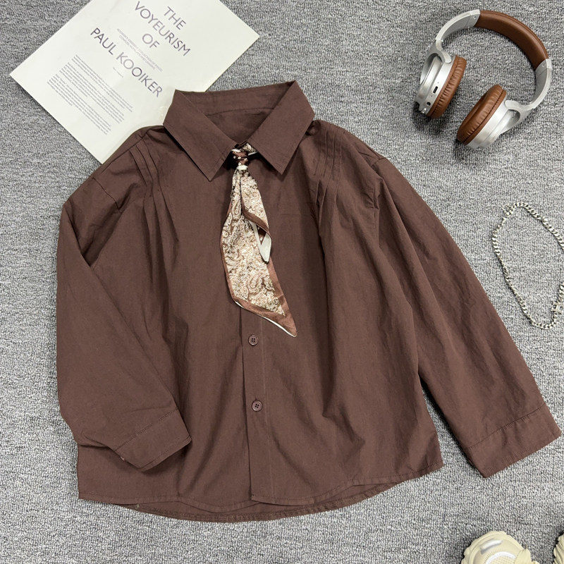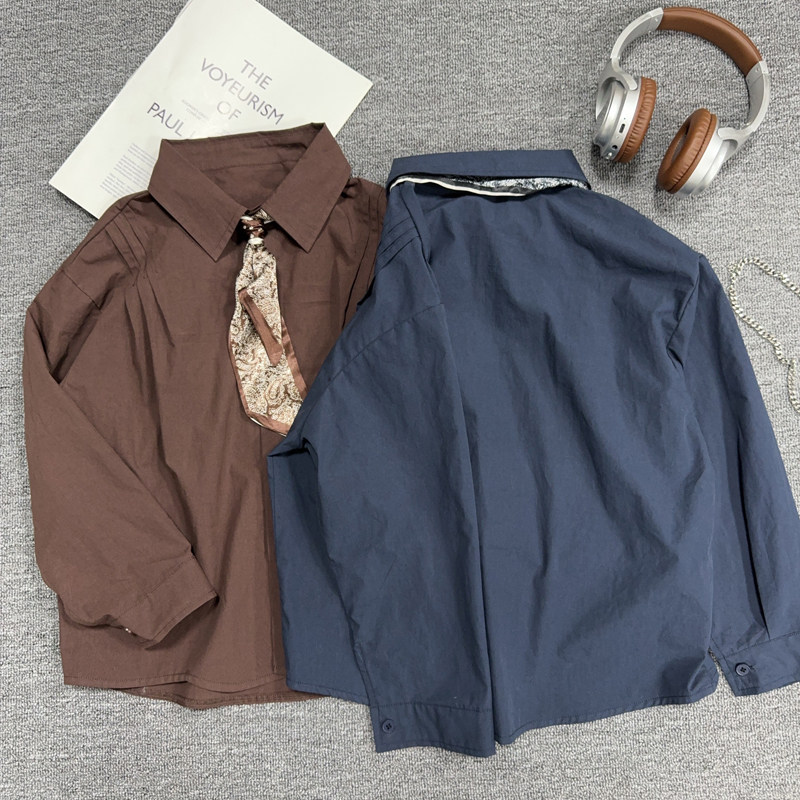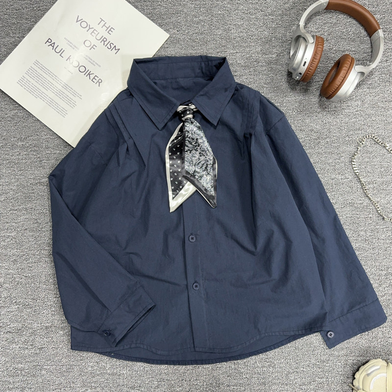 tgc2025秋季儿童休闲薄外套中大童男童春秋深蓝宽松领带衬衫上衣