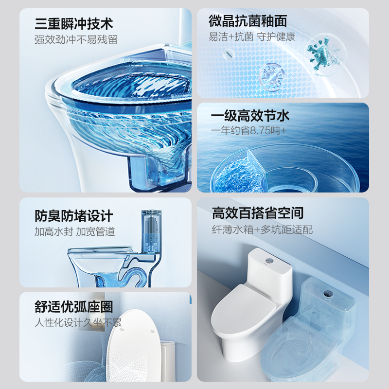 恒洁卫浴虹吸式马桶家用节水大冲力陶瓷佛山防臭坐便器