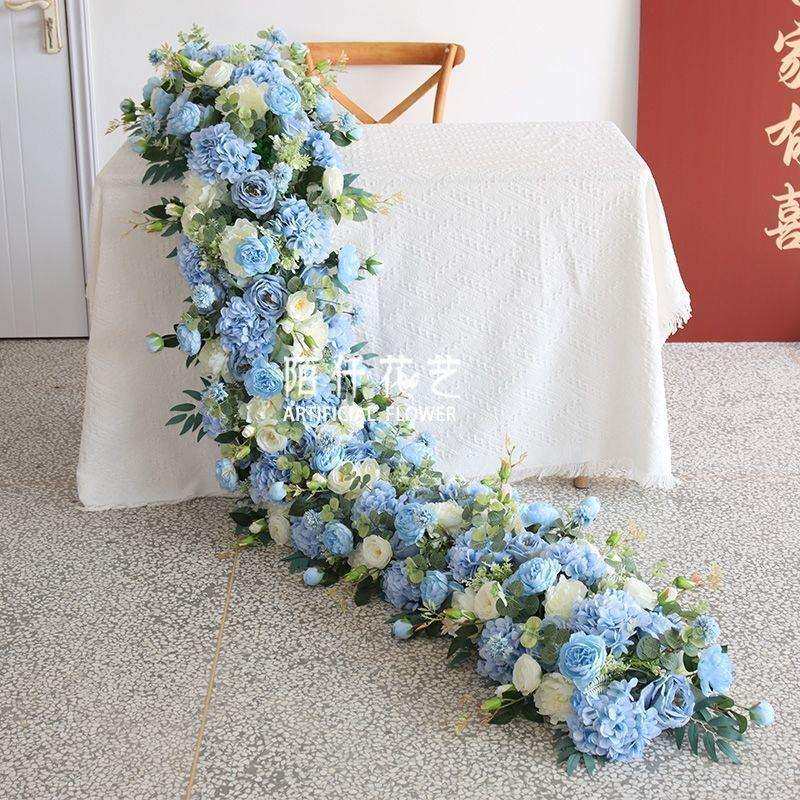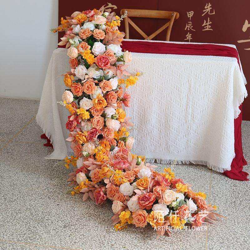 婚庆酒店宴会长桌花西式欧式仿真长花排拖尾花艺婚礼派对装饰花艺