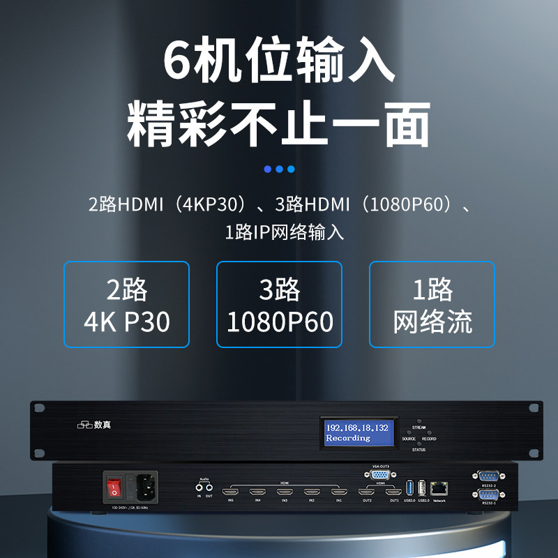 数真4K超清视频会议录播一体机RT9650录制直播点播导播存储录播主机5路HDMI网络教学教育6机位录播器全套设备