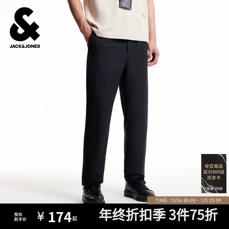 杰克琼斯男装秋季新款休闲裤经典纯色泡泡纱锥形长裤子下装男款
