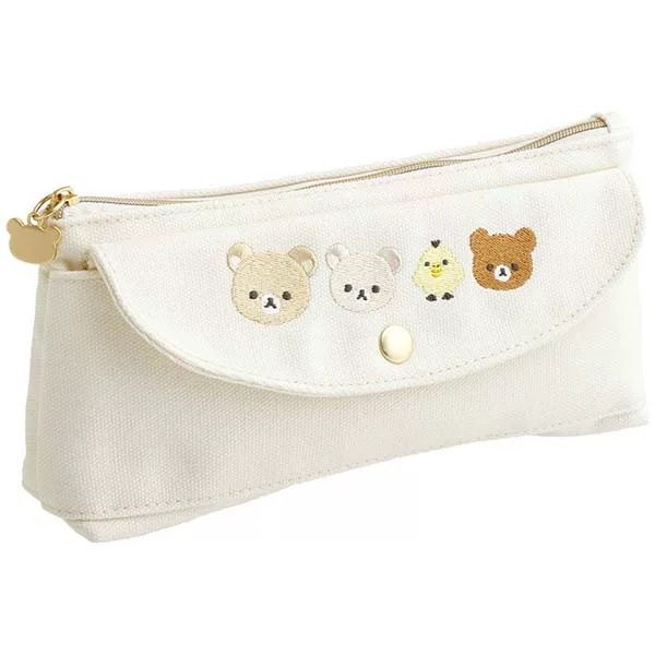 现货日本轻松熊刺绣笔袋卡通可爱学生铅笔袋大容量零钱文具收纳包