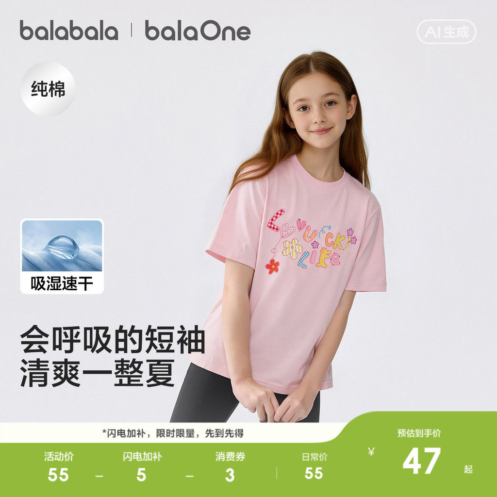 巴拉巴拉童装女童短袖t恤儿童2026新款夏装大童速干甜美学院上衣