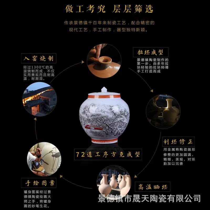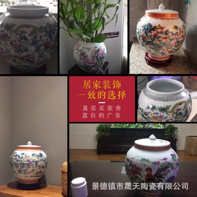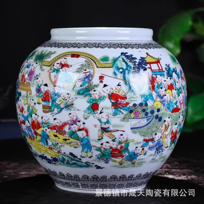 景德镇陶瓷器仿古百子图大花瓶中式古典客厅家居装饰品摆设摆件