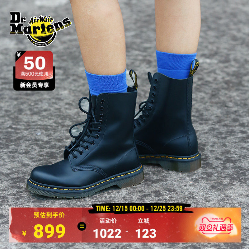 Dr.Martens马丁博士1490英伦冬显瘦酷飒骑士靴光面皮黑色女马丁靴