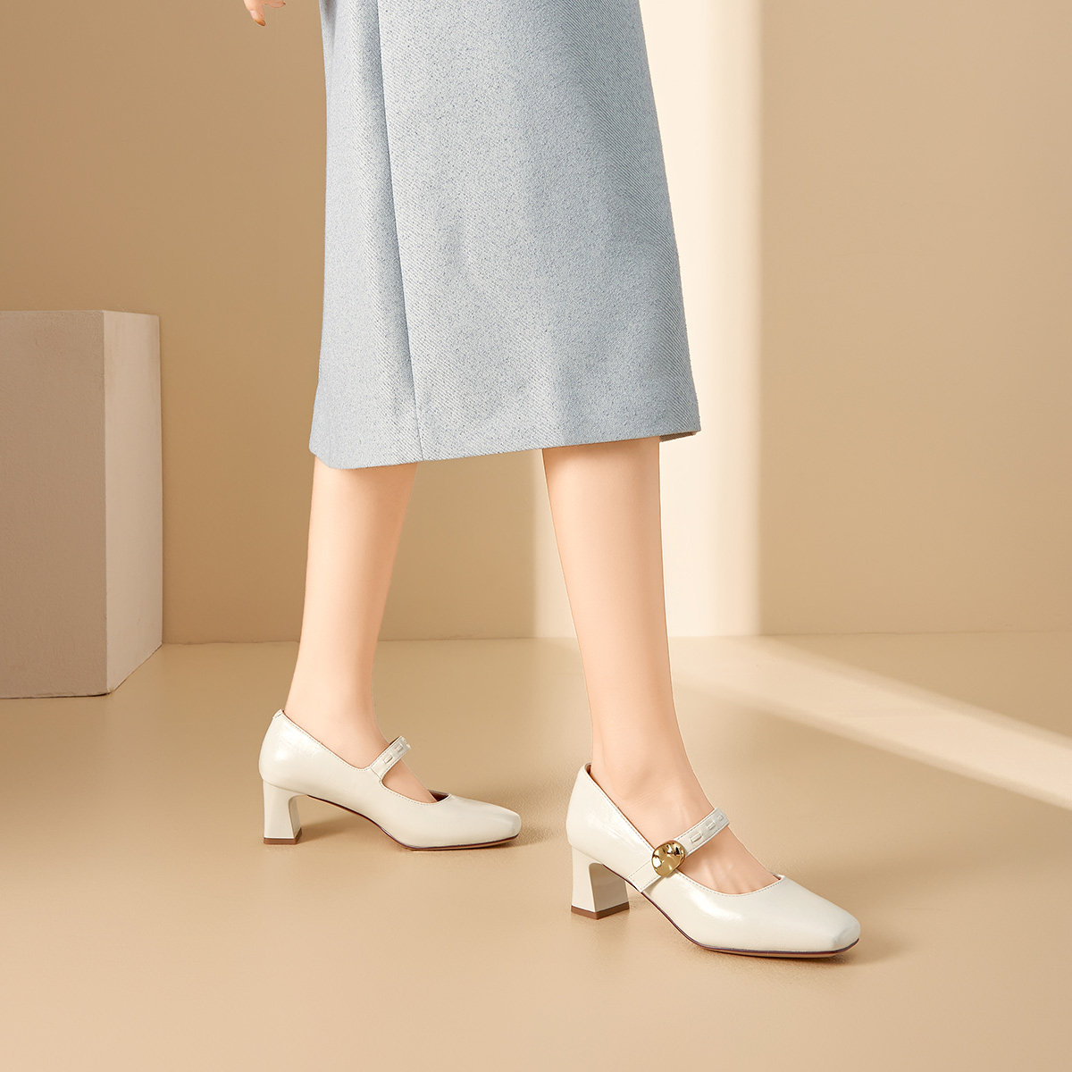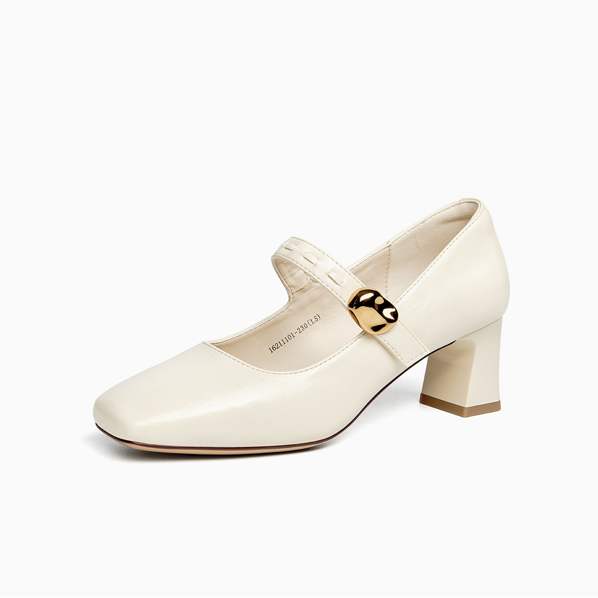 真皮~骄屿法式玛丽珍高跟鞋春秋水钻方头漆皮气质粗跟单鞋不累脚