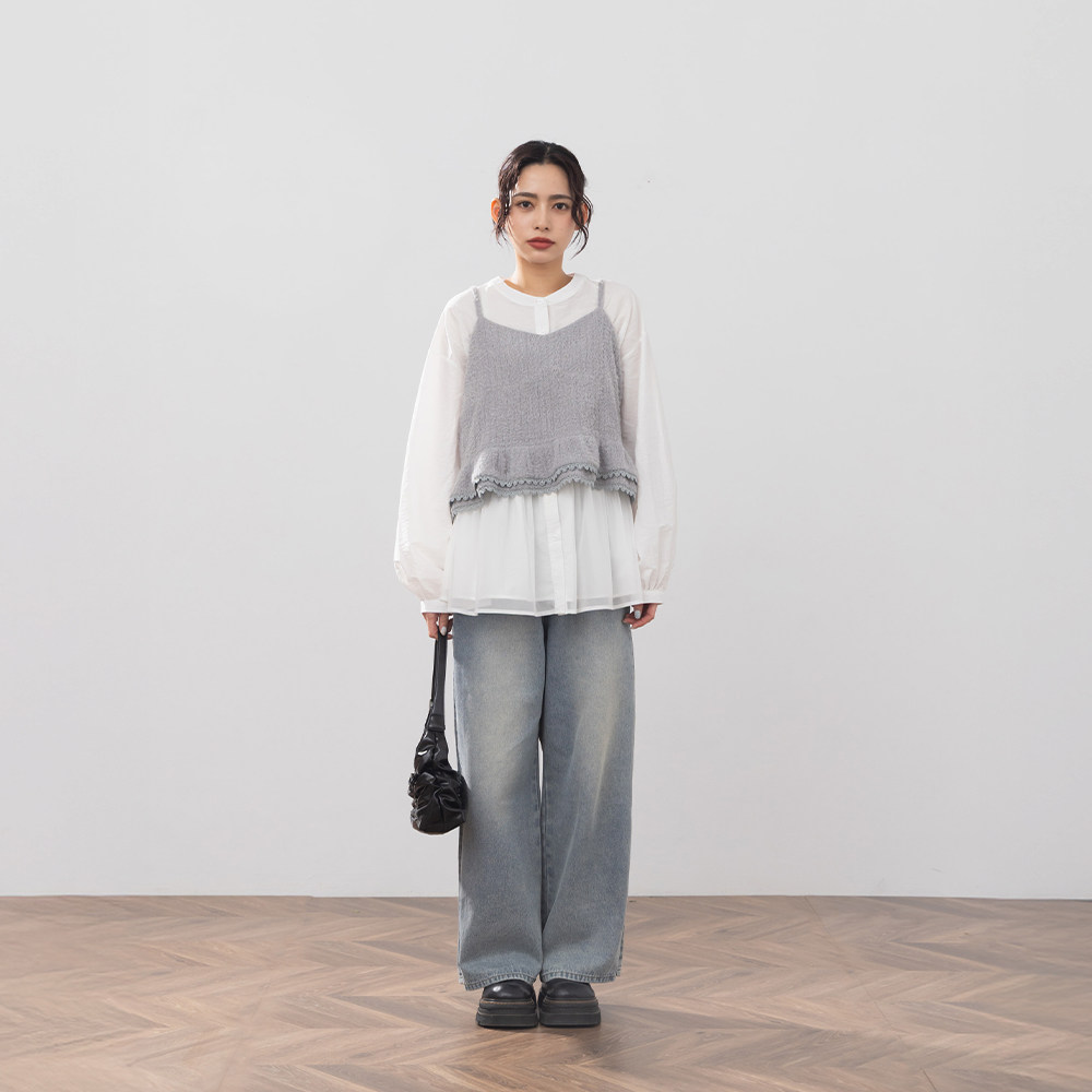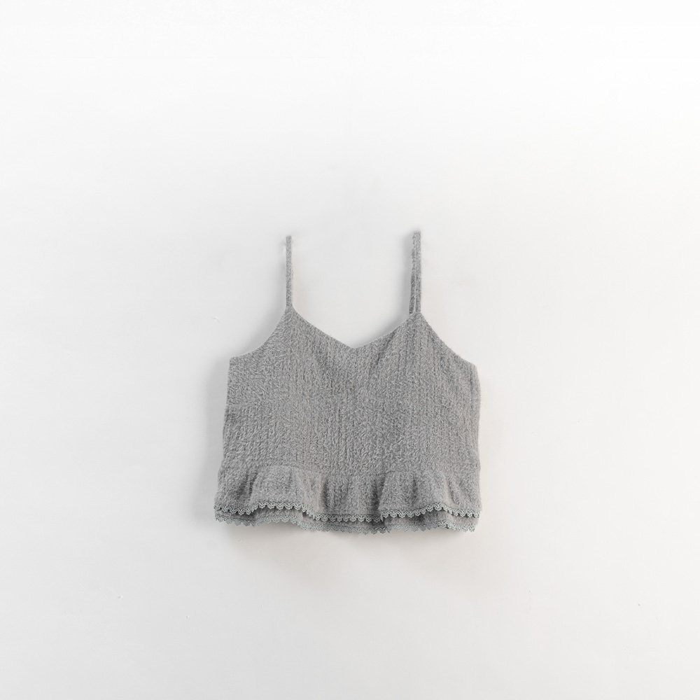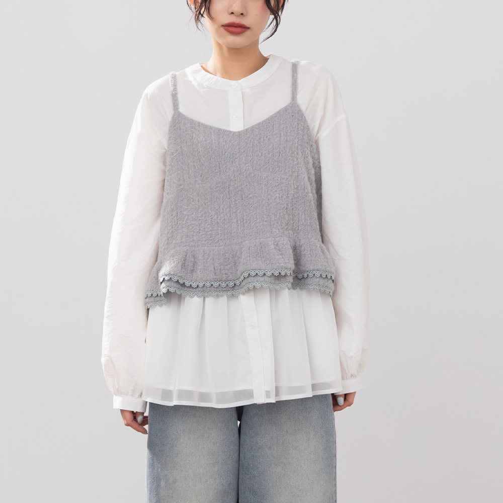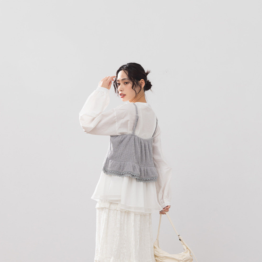 QUEENSHOP 2025秋冬新品女装蕾丝下摆毛绒罩衫吊带背心灰01099420