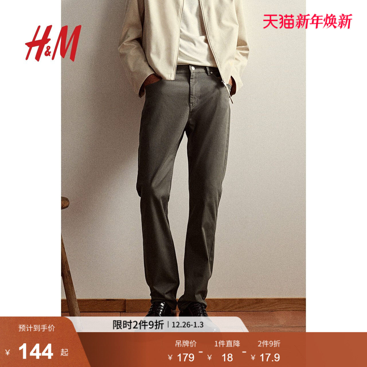 HM男装休闲裤冬季通勤斜纹棉布简约英伦风休闲合身长裤1074402
