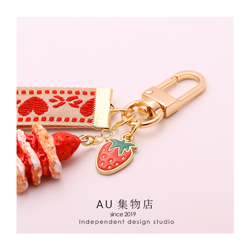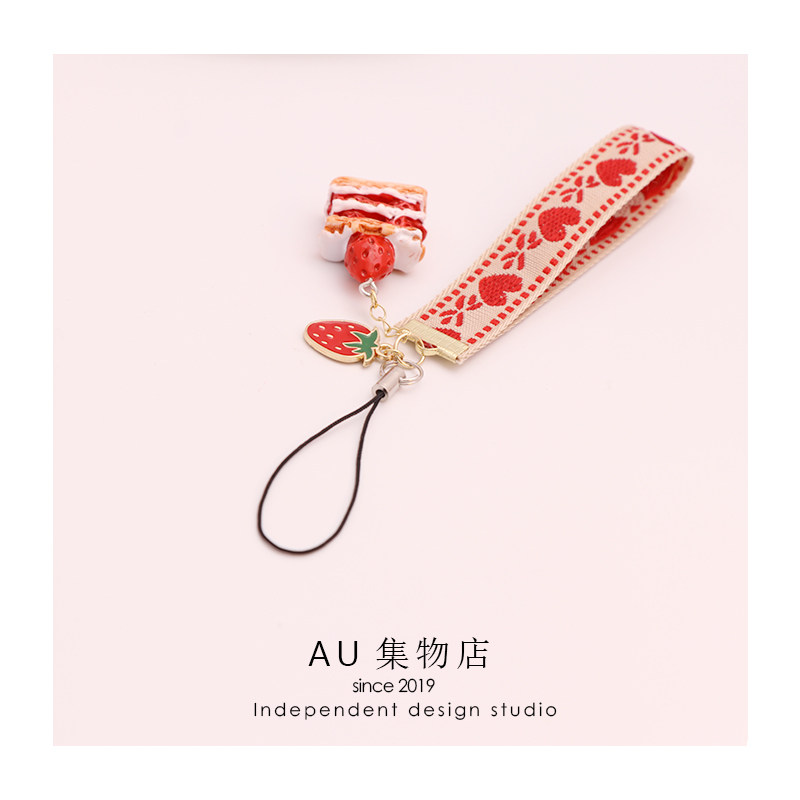 au原创日系可爱草莓蛋糕短款手腕手机挂绳创意少女挂件饰品挂饰29