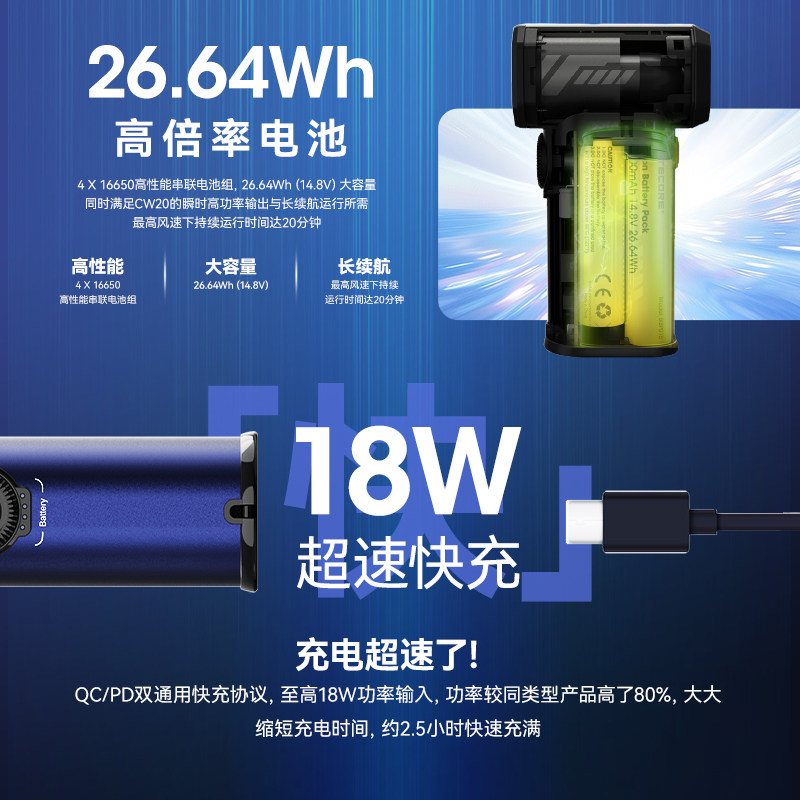 NITECORE奈特科尔CW20 星空蓝摄影造型鼓风机影棚辅助器材便携式
