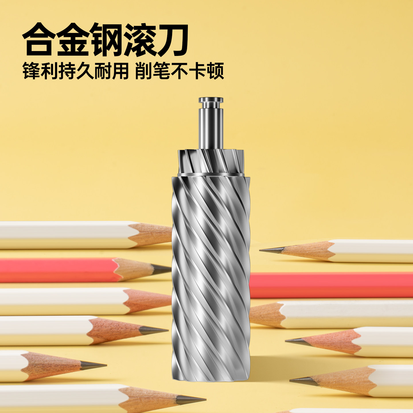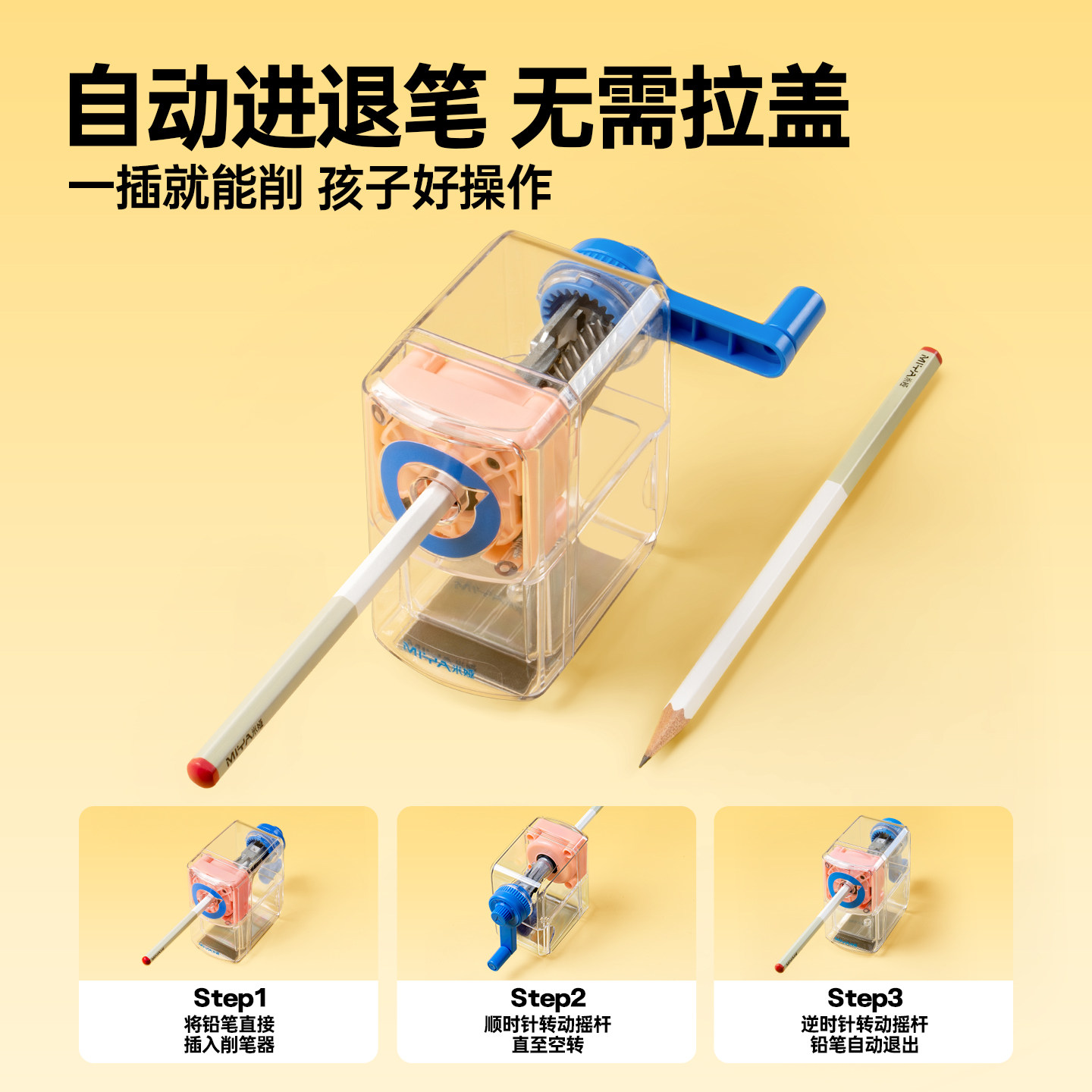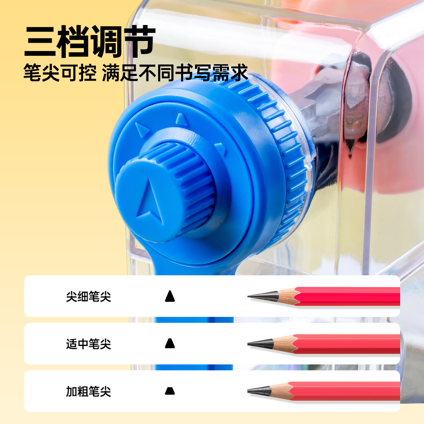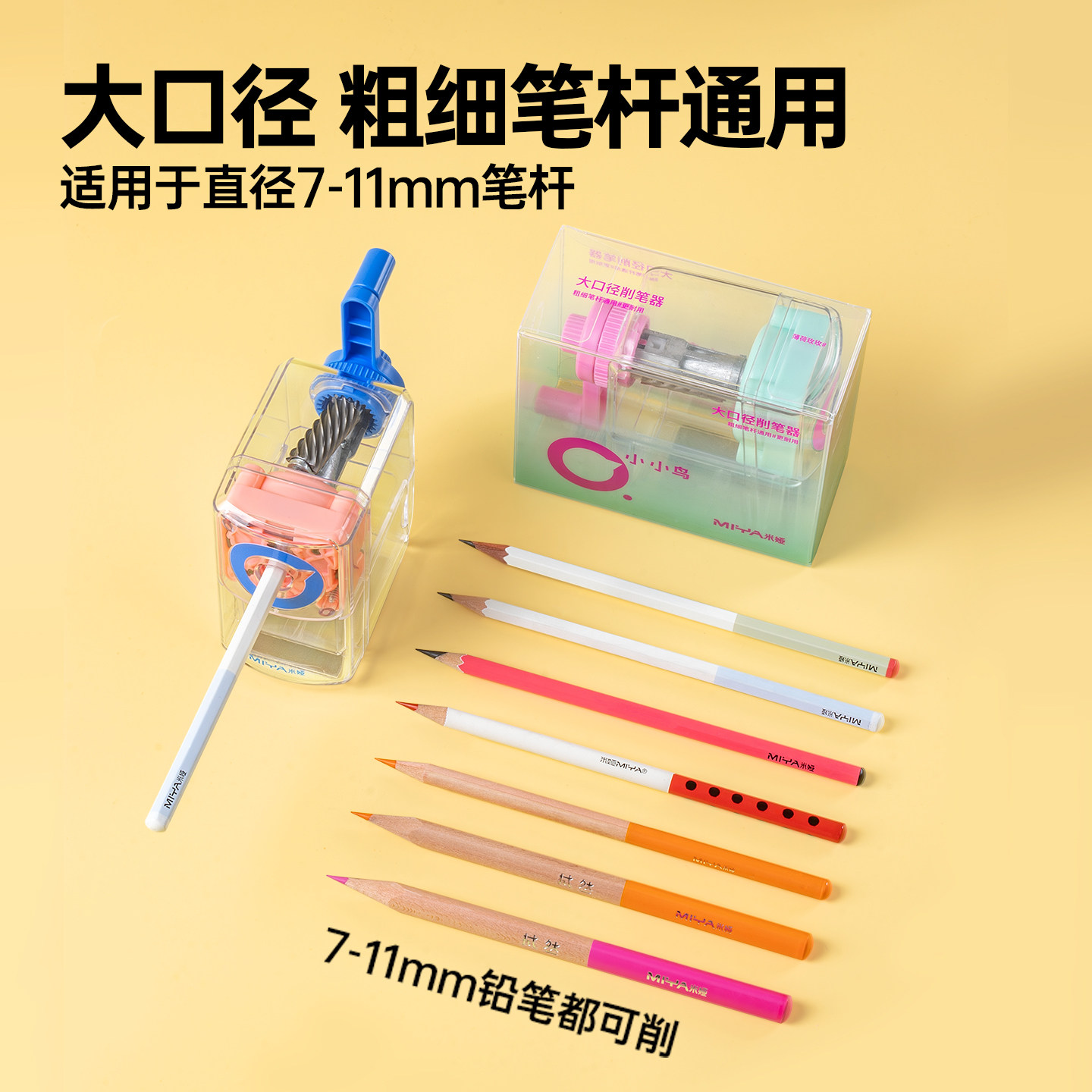 米娅大口径削笔器学生儿童粗细笔杆通用3档可调铅笔彩铅卷笔刀转笔刀透明废屑仓自动进铅撞色手摇书写削笔刀