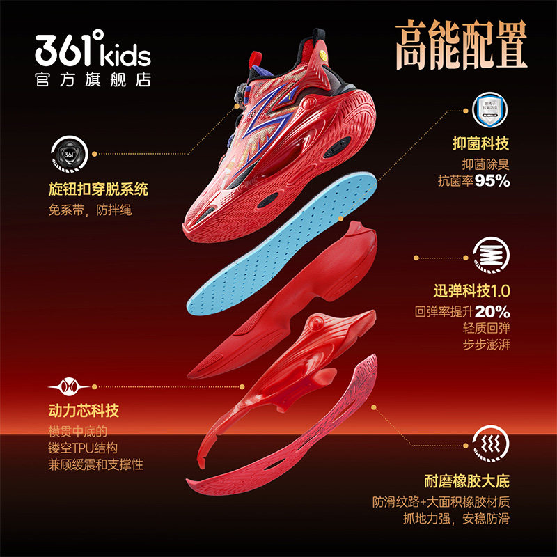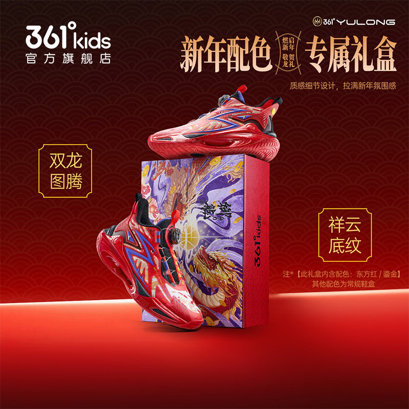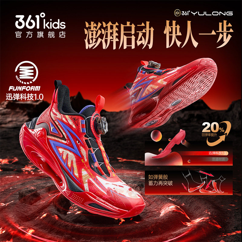 御龙|361童鞋儿童篮球鞋男童运动鞋2026春季新款新年红色男孩鞋子