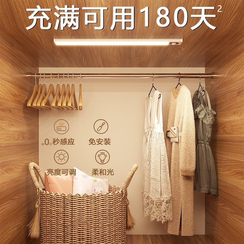led充电灯带自粘感应无线免接线直角灯酒柜鞋柜衣柜橱柜磁吸灯条