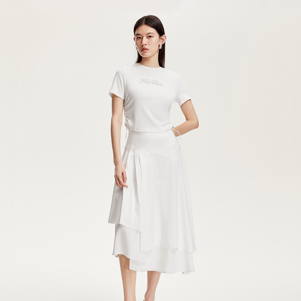 Vero Moda半身裙女2025夏季新款中腰A字不规则设计醋纤325216012