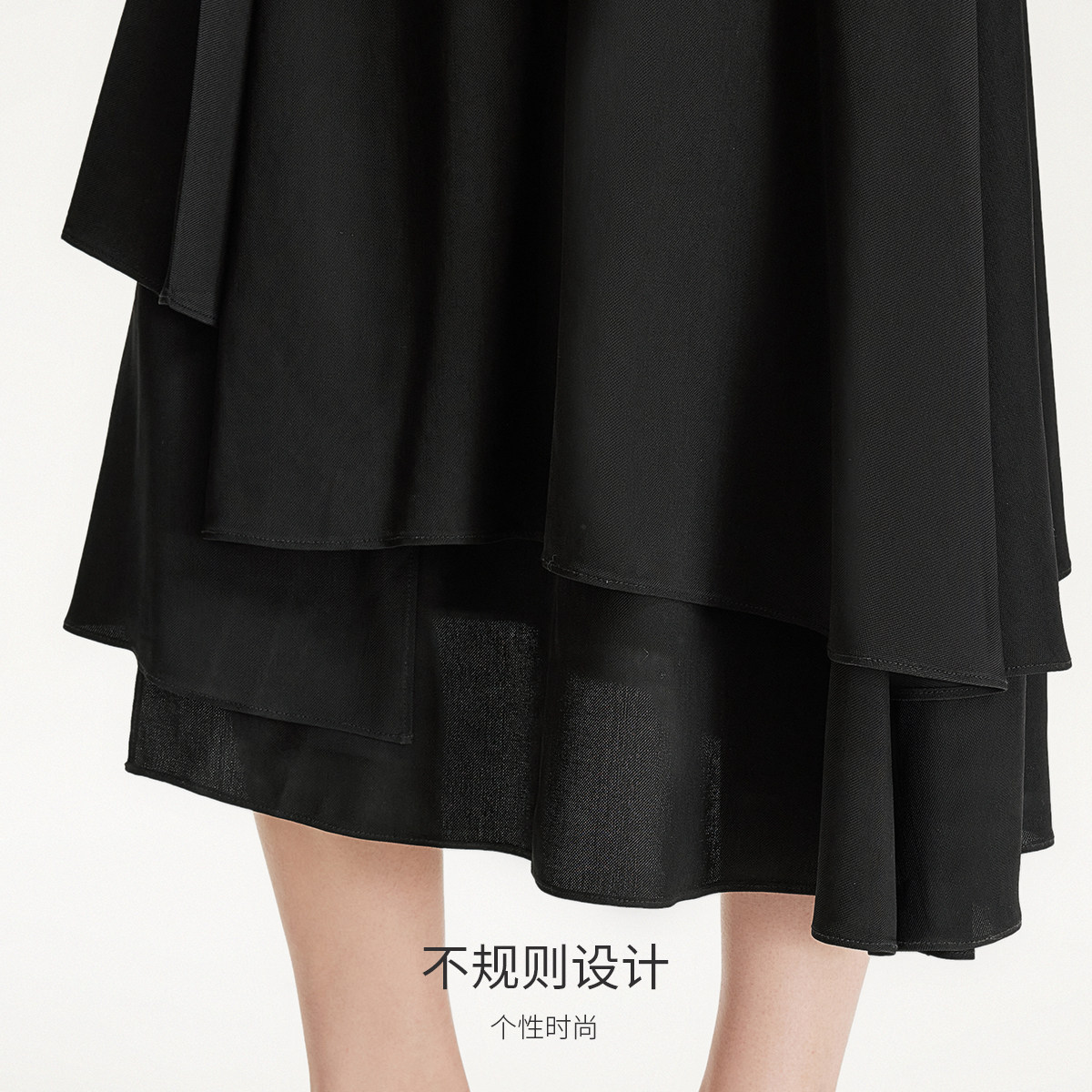RAPPEYE 设计感褶皱折叠伞裙显瘦高腰不规则A字裙小个子半身裙女
