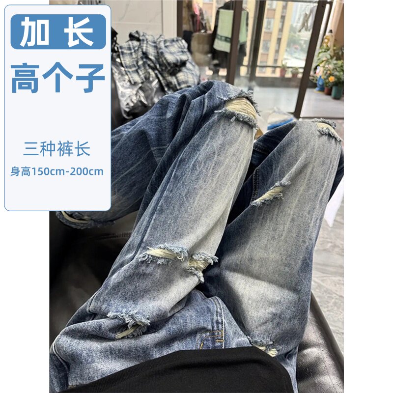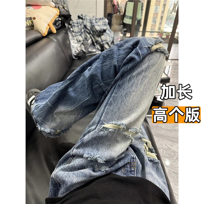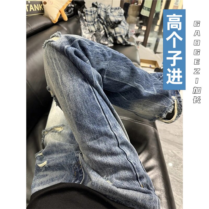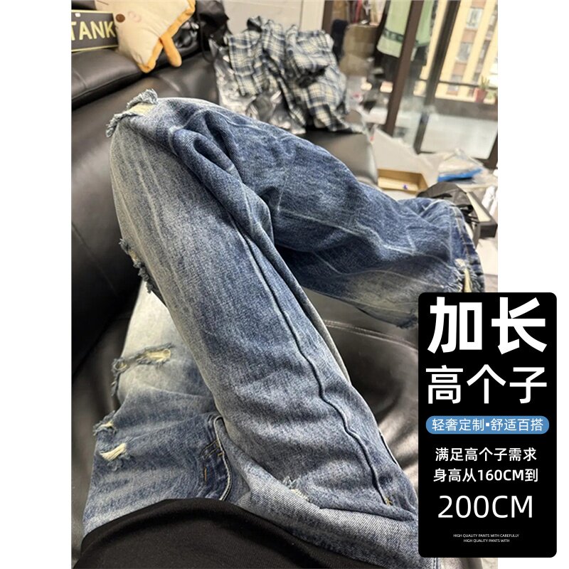 高个子加长加厚190裤子男青少年超长乞丐破洞牛仔裤男春季休闲裤