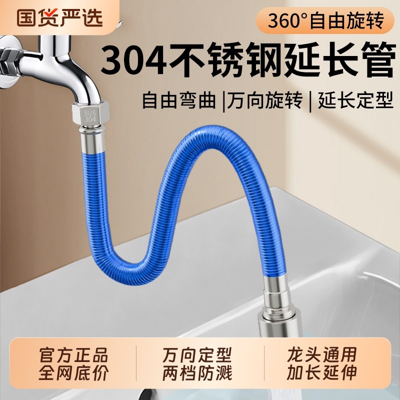 304不锈钢水龙头延长管万向加长延伸器能万接头水管软管防溅通用