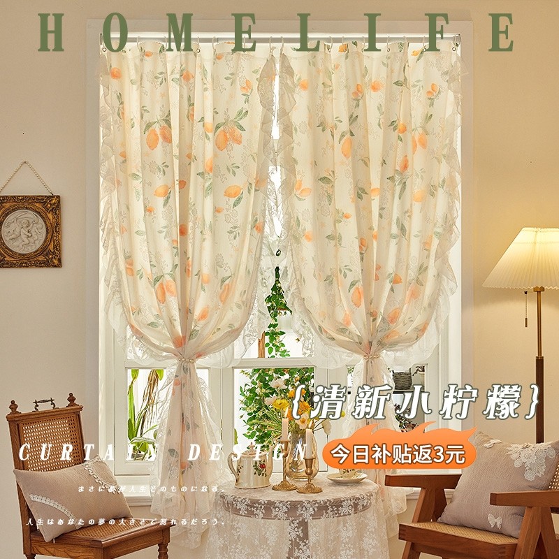 法式窗帘2024安装纱帘免打孔新款伸缩杆卧室飘窗女遮光梦幻帘小窗