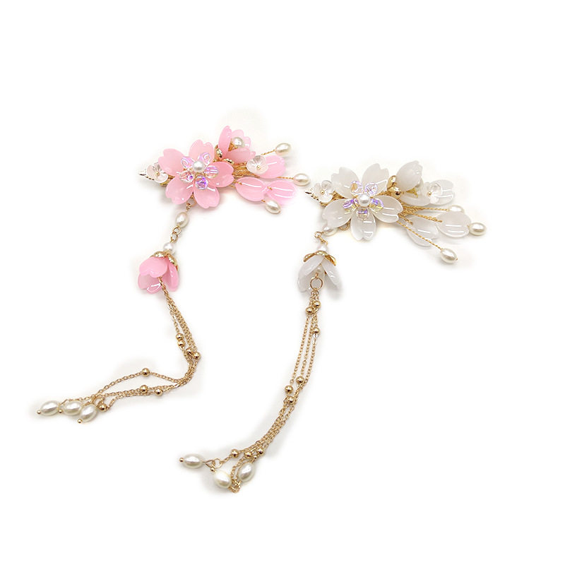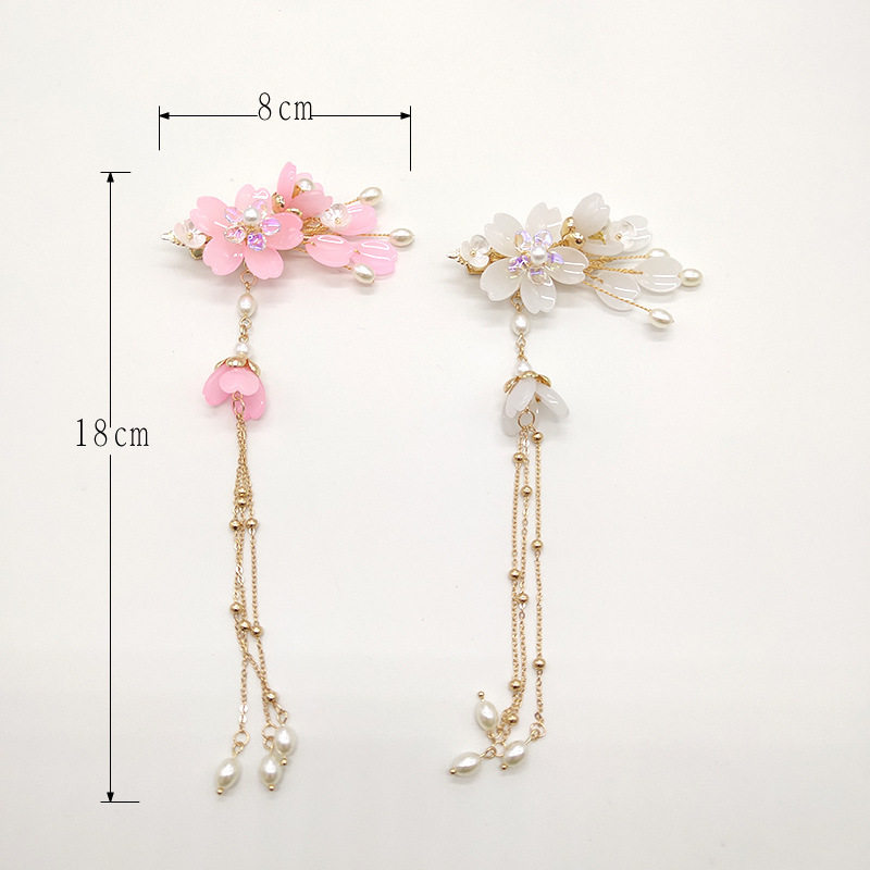 古风汉服头饰流苏边夹粉玉花朵发夹发簪步摇侧边发夹仿玉花朵粉樱