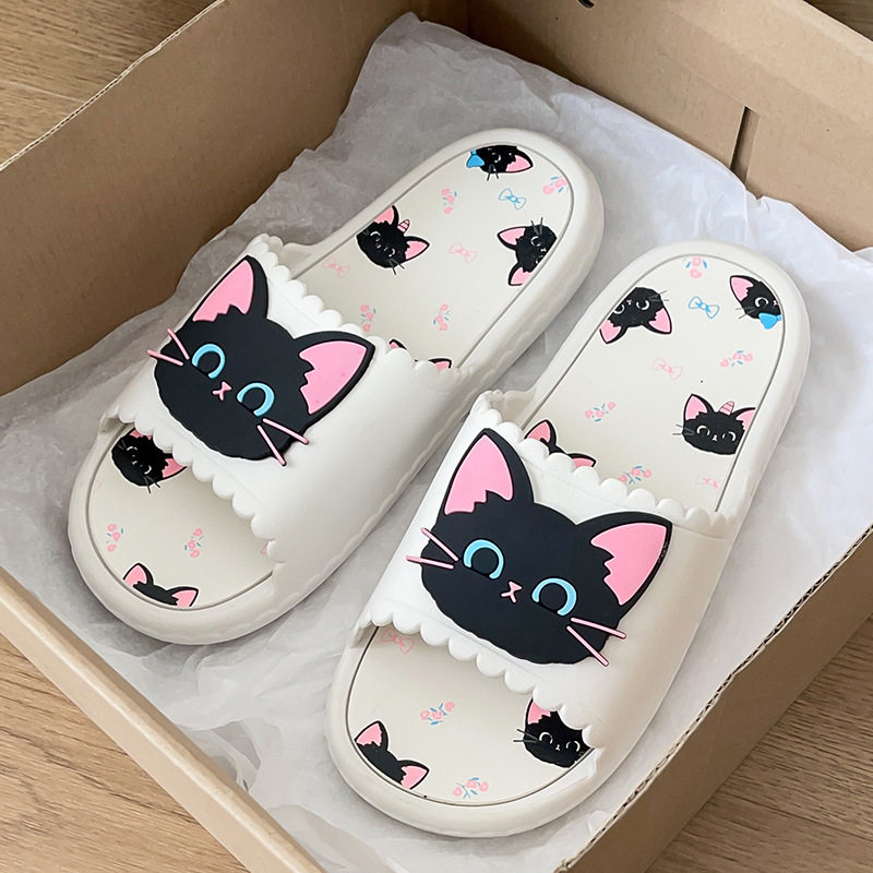 卡通小狗外穿时尚韩版卡爱超萌小黑猫家居室内洗澡防滑软底拖鞋潮