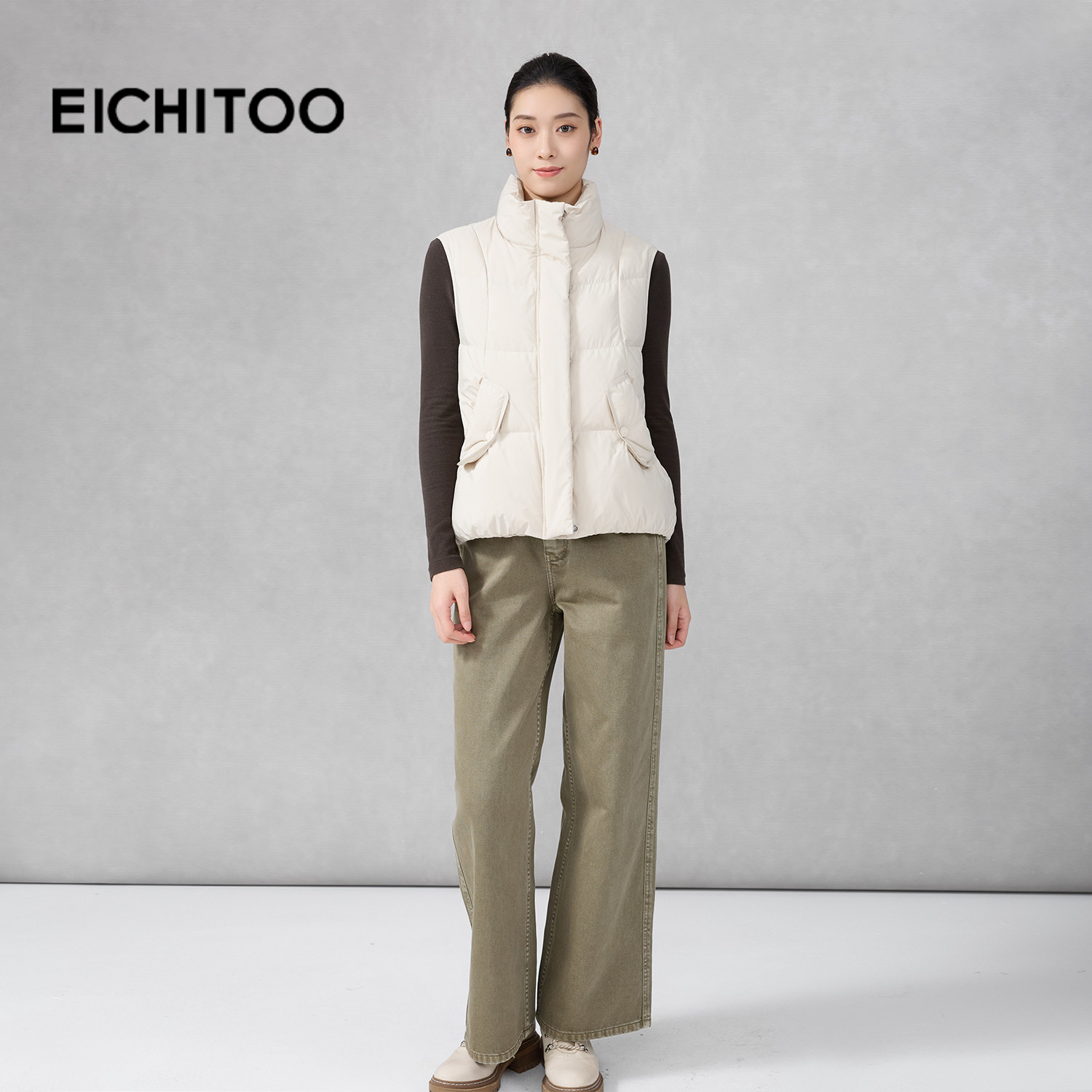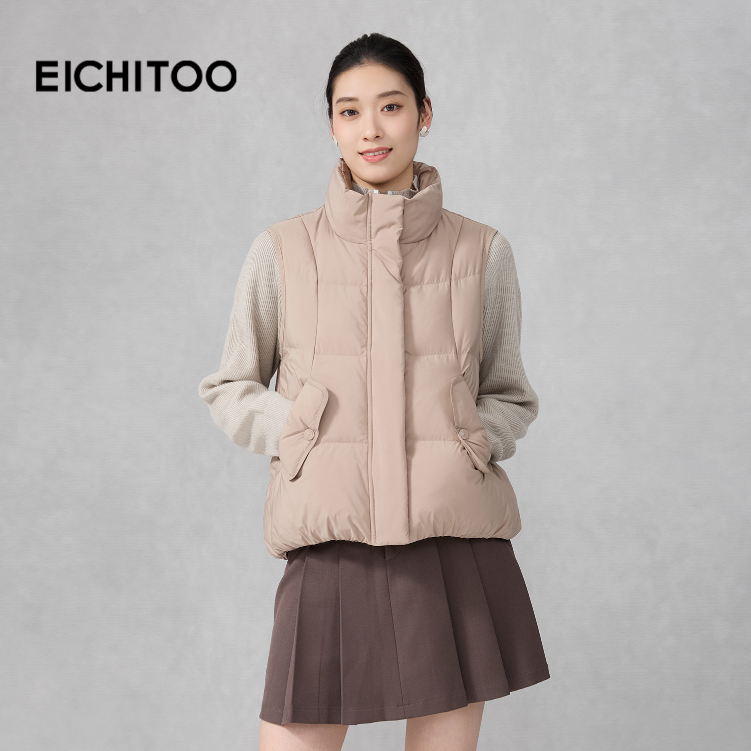 爱居兔简约时髦防风短款轻薄羽绒马甲2025年冬季新款女柔软羽绒服