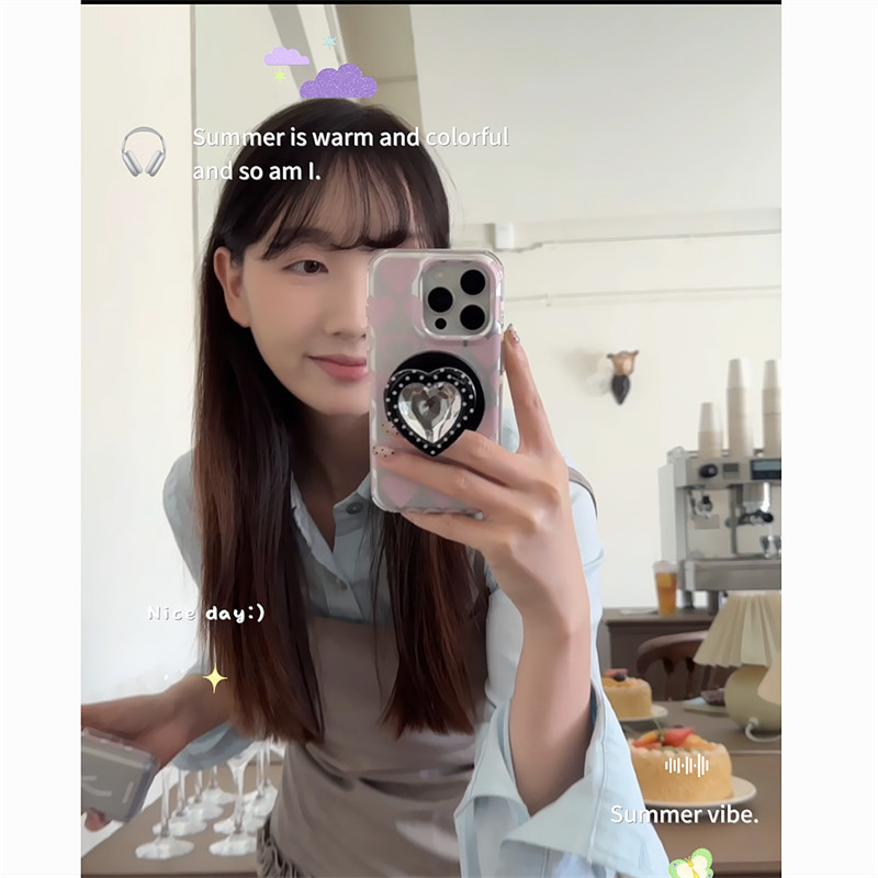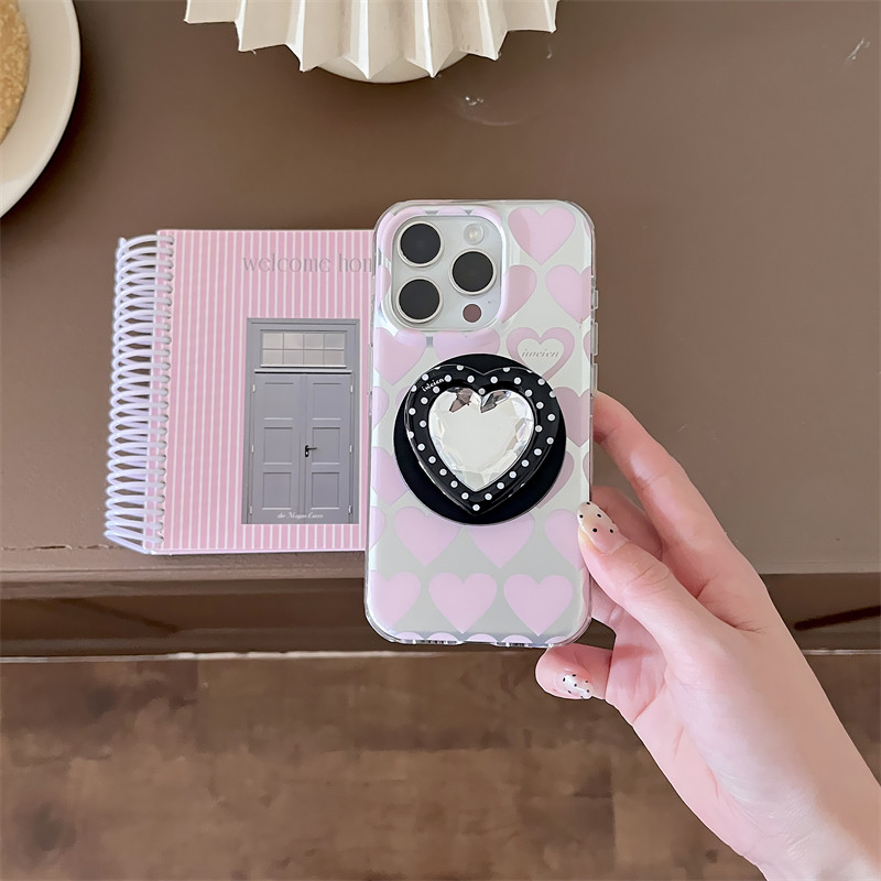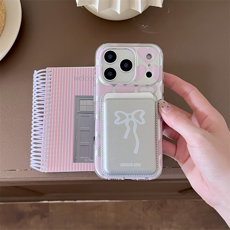 韩国ins小众高级感甜美粉色爱心磁吸蝴蝶结卡包17promax适用iphone16pro双层波点爱心支架15手机壳14苹果13女