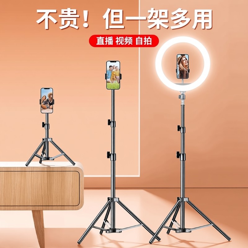 手机支架直播专用自拍杆三脚架带补光灯拍照神器拍摄三角支撑架2025新款落地架子多功能拍视频手机架万能通用