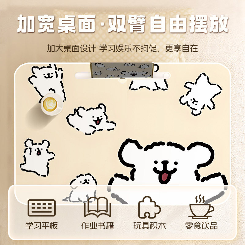线条小狗床上折叠小桌子学生宿舍学习作业阅读写字书桌家用卧室手账办公飘窗电脑桌儿童吃饭餐桌便携式小桌板
