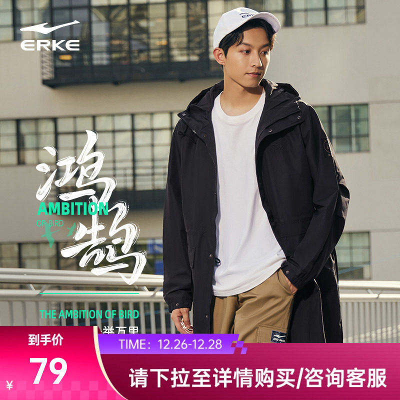 鸿鹄丨鸿星尔克风衣男冬季男士国潮复古中长款防风运动外套大衣男