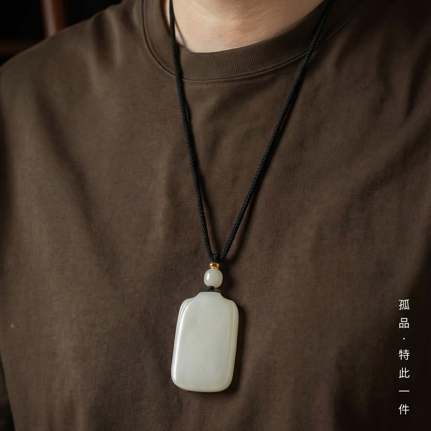 孤品【和田玉·无事牌】精品和田玉温润吊坠无事平安一物一证