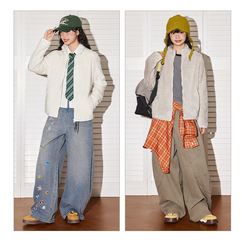 鸭鸭情侣摇粒绒外套男女同款冬季反季长袖户外运动保暖抓绒衣夹克