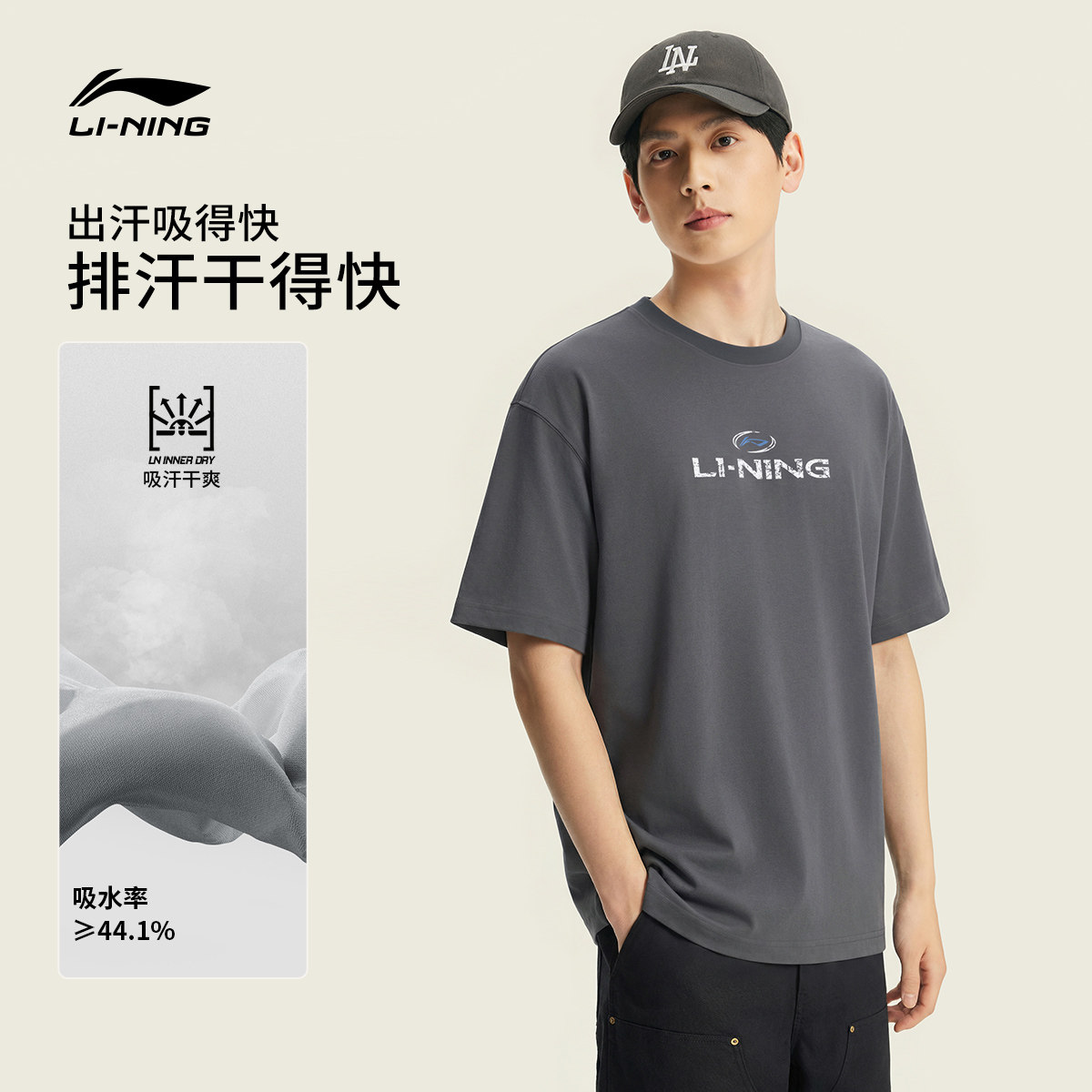 李宁冰丝短袖女春夏2026新款美式复古情侣圆领半袖速干运动T恤男