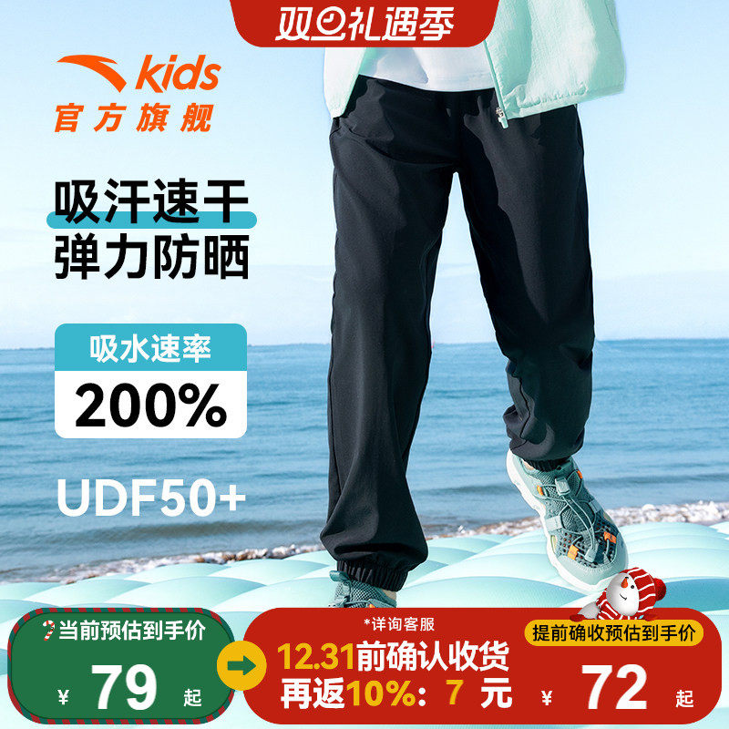 安踏儿童装男童防蚊裤子长裤夏季薄款2025新款夏装速干凉感运动裤