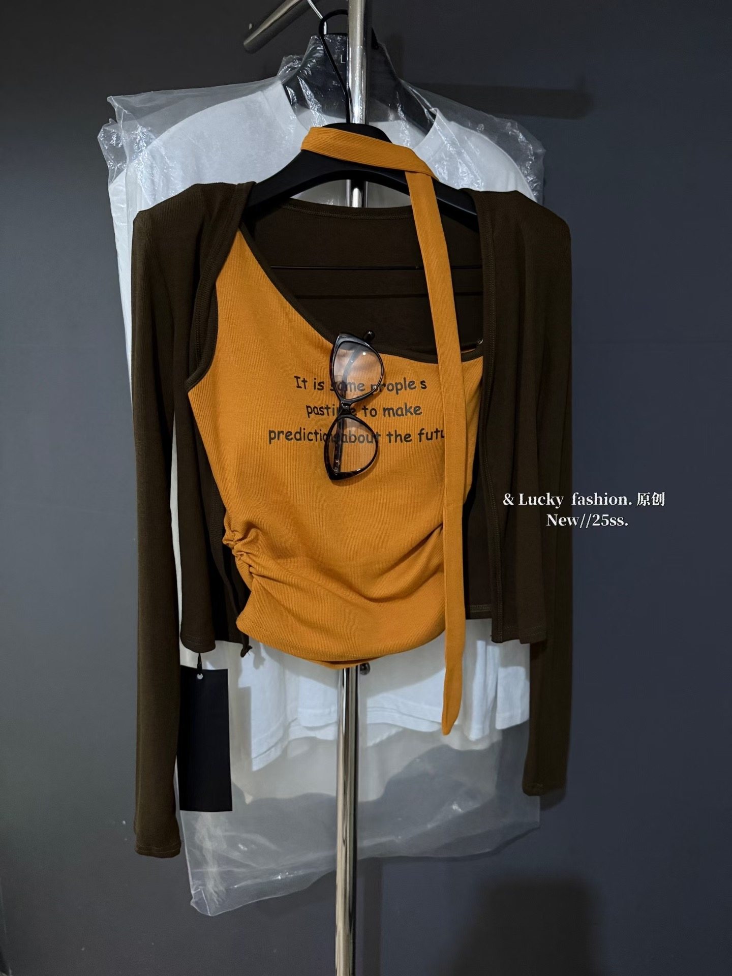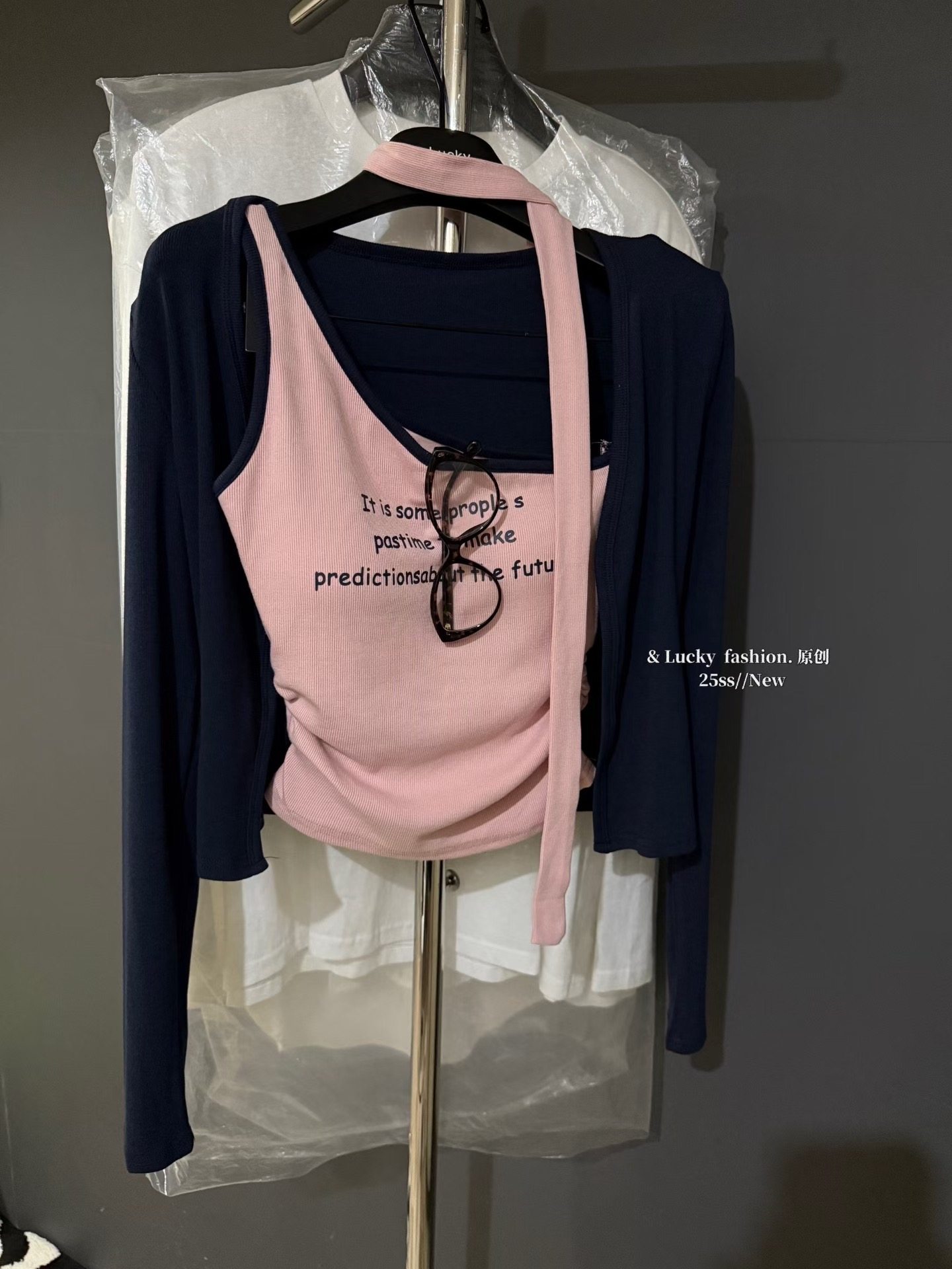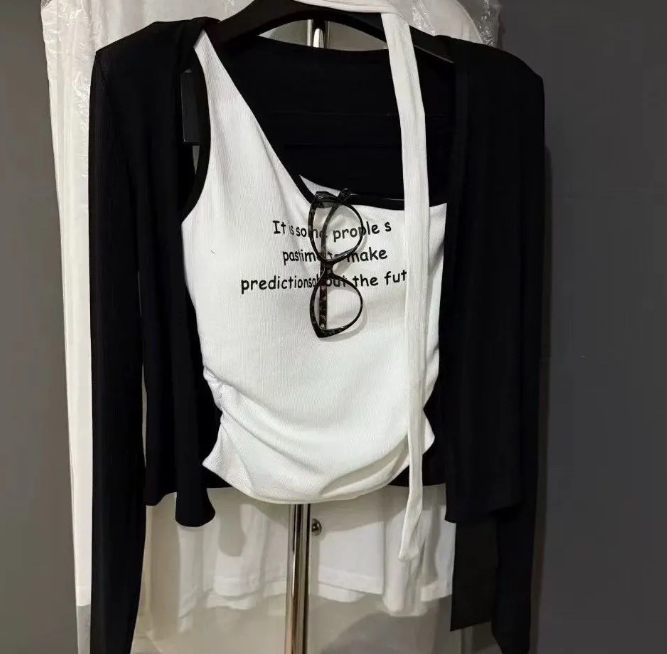 2025秋新款时尚百搭辣妹显瘦字母印花吊带背心+开衫上衣女两件套
