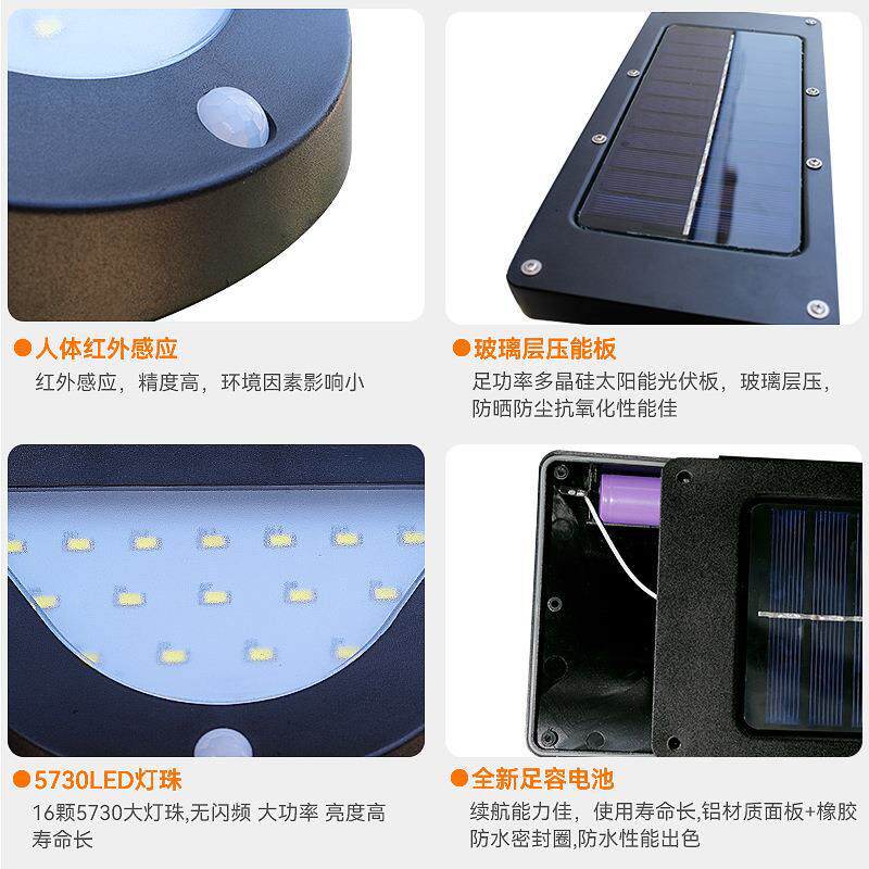 太阳能灯免布线门头照明室外楼梯外墙灯人体感应高亮太阳能壁灯