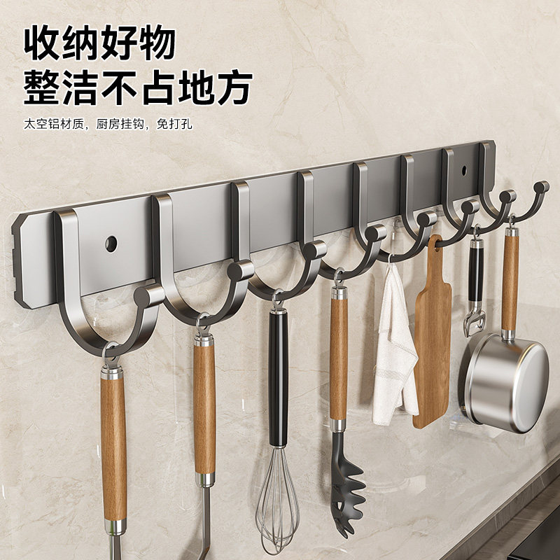 居家厨房铁艺橱柜收纳挂架多功能排钩衣柜整理架厨房无痕免钉挂钩