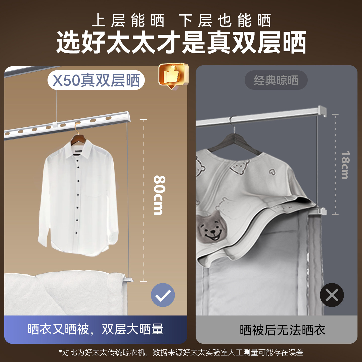 【政府补贴】好太太隐形晾衣架电动晒衣架隐藏嵌入式阳台家用晾杆