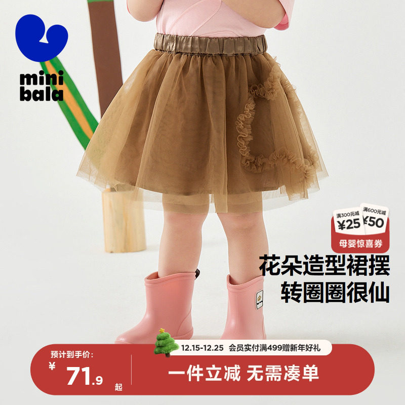 迷你巴拉巴拉网纱短裙女童婴儿衣服宝宝周岁裙子2025夏季新款