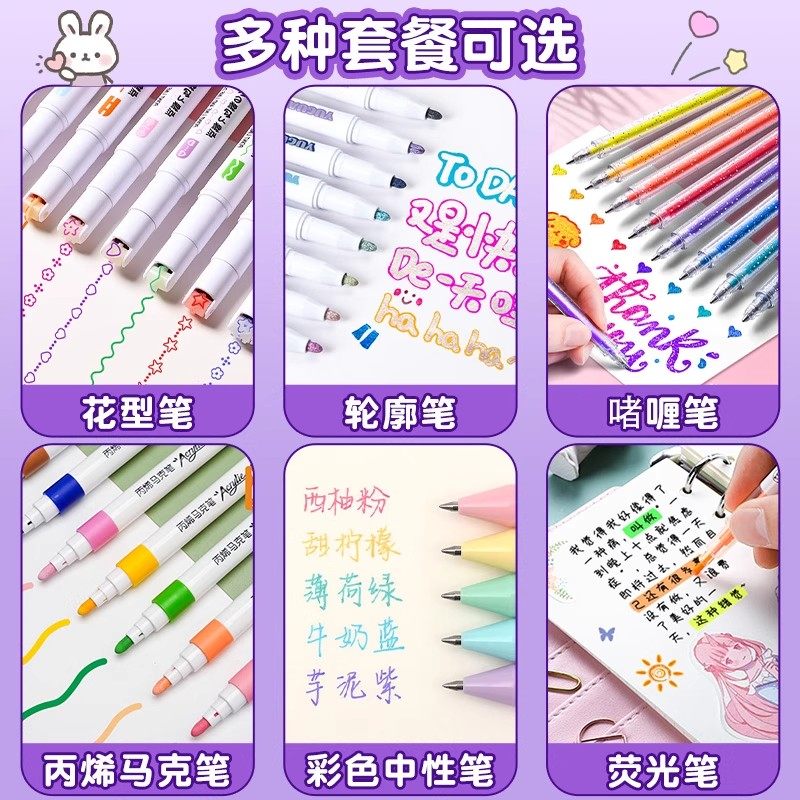 双线轮廓笔手抄报手帐专用荧光笔闪光啫喱笔儿童小学生果冻笔记号笔彩色划重点3d立体高颜值银光笔珠光笔文具