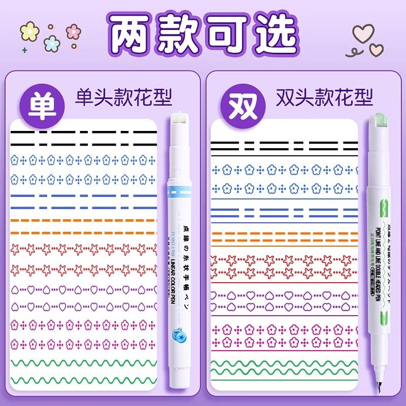 花型轮廓曲线笔手帐图案彩色标记花纹荧光色手账小报儿童花形勾线多功能花边花色记号手抄报印花线条滚轮专用