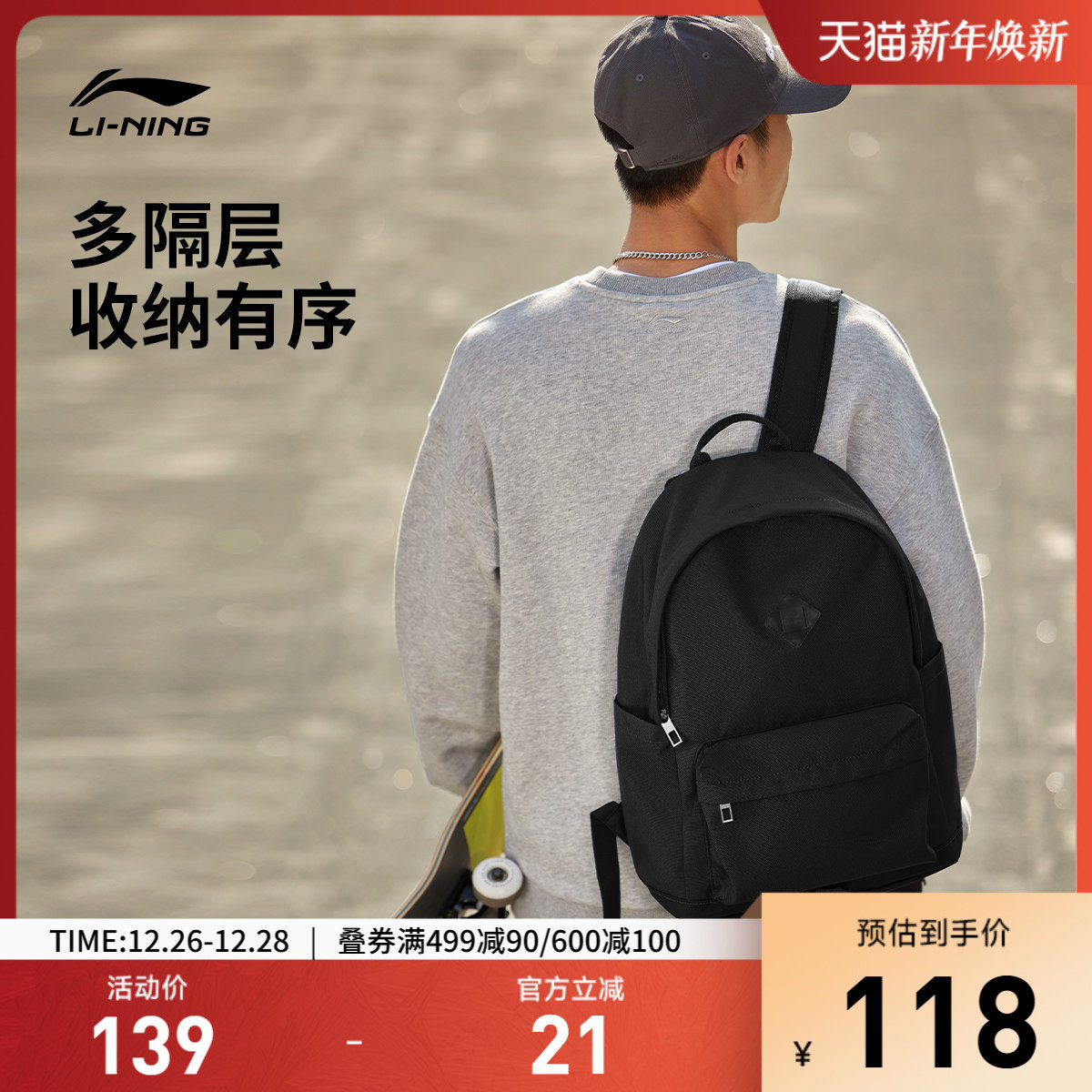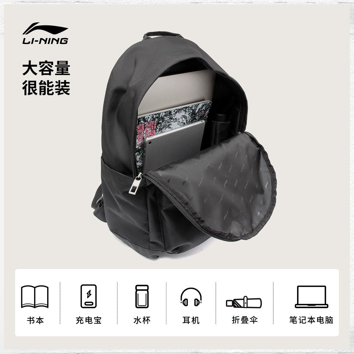 李宁双肩包男包女包新款大容量背包书包大学生户外旅行通勤运动包