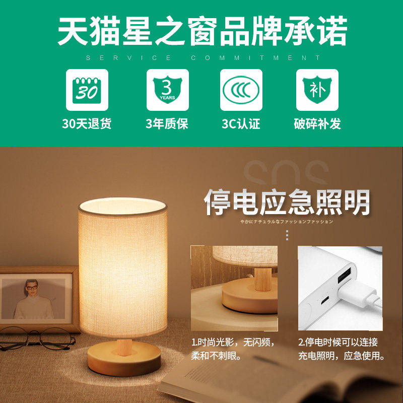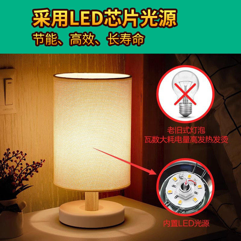 北欧台灯卧室床头简约个性创意新中式复古布艺温馨浪漫调光小夜灯
