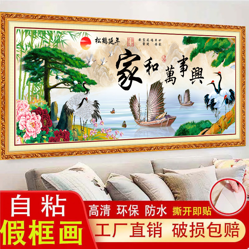 卧室床头背靠金山装饰画客厅挂画自粘中式沙发背景墙贴画壁画贴纸