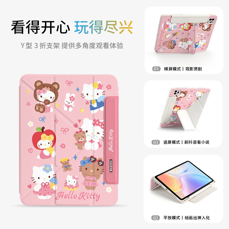 MASFEIL × 粉系凯蒂适用苹果ipad保护套2024新款Pro11寸平板壳iPad10代10.2磁吸air5全包13带笔槽9.7/mini6
