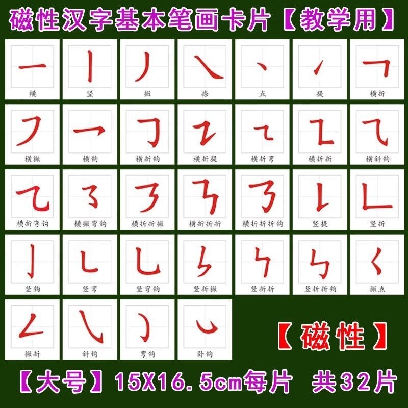 磁性汉字基本笔画划偏旁部首识字卡片挂图冰箱贴吸磁幼儿小学早教