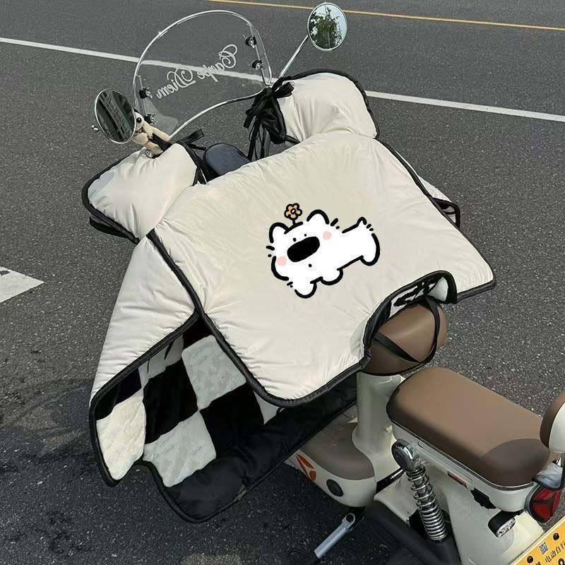 冬季电动摩托车挡风被卡通加绒保暖防寒防风罩侧翼春秋款双面防水