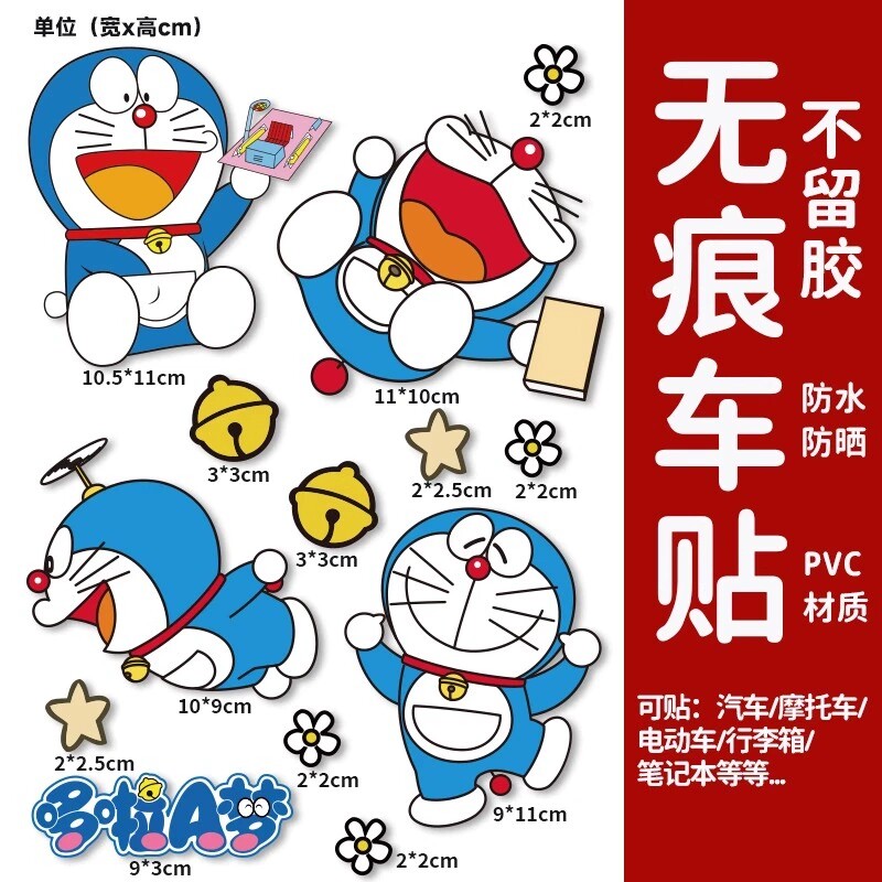 哆啦a梦汽车贴纸车身划痕遮挡电动车摩托车装饰贴画防水防晒贴纸